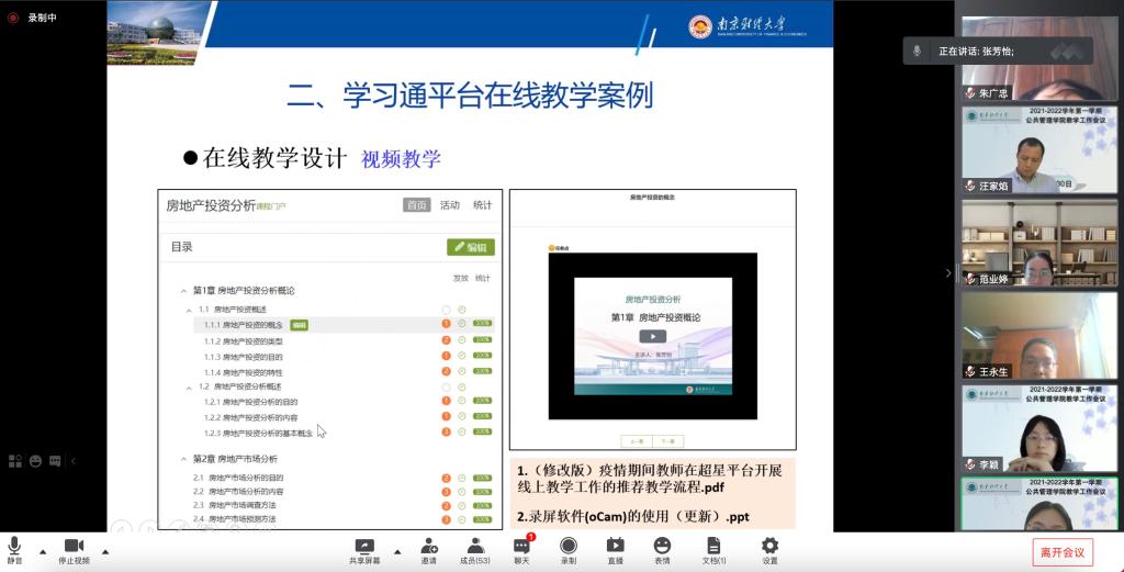 会上,李永乐副院长传达了学校新学期本科教学工作会精神,按照“2021- 2022学年秋季学期教学运行有关工作安排通知”文件要求,对学院新学期线上本科教学工作进行了布置,明确了时间节点、细化了工作要求。王永生副院长就新学期研究生工作从开学注册、线上教学模式、学位工作、实践教学四个方面做了安排,详细介绍了各环节工作方案。