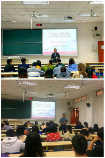 院长黄斌针对学生考研出国指导讲座,党委书记胡永远针对学生就业指导讲座,辅导员冯颖老师对学生求职的疑问和后续的学生工作进行了逐一解答,16级全体毕业生参加了此次会议。