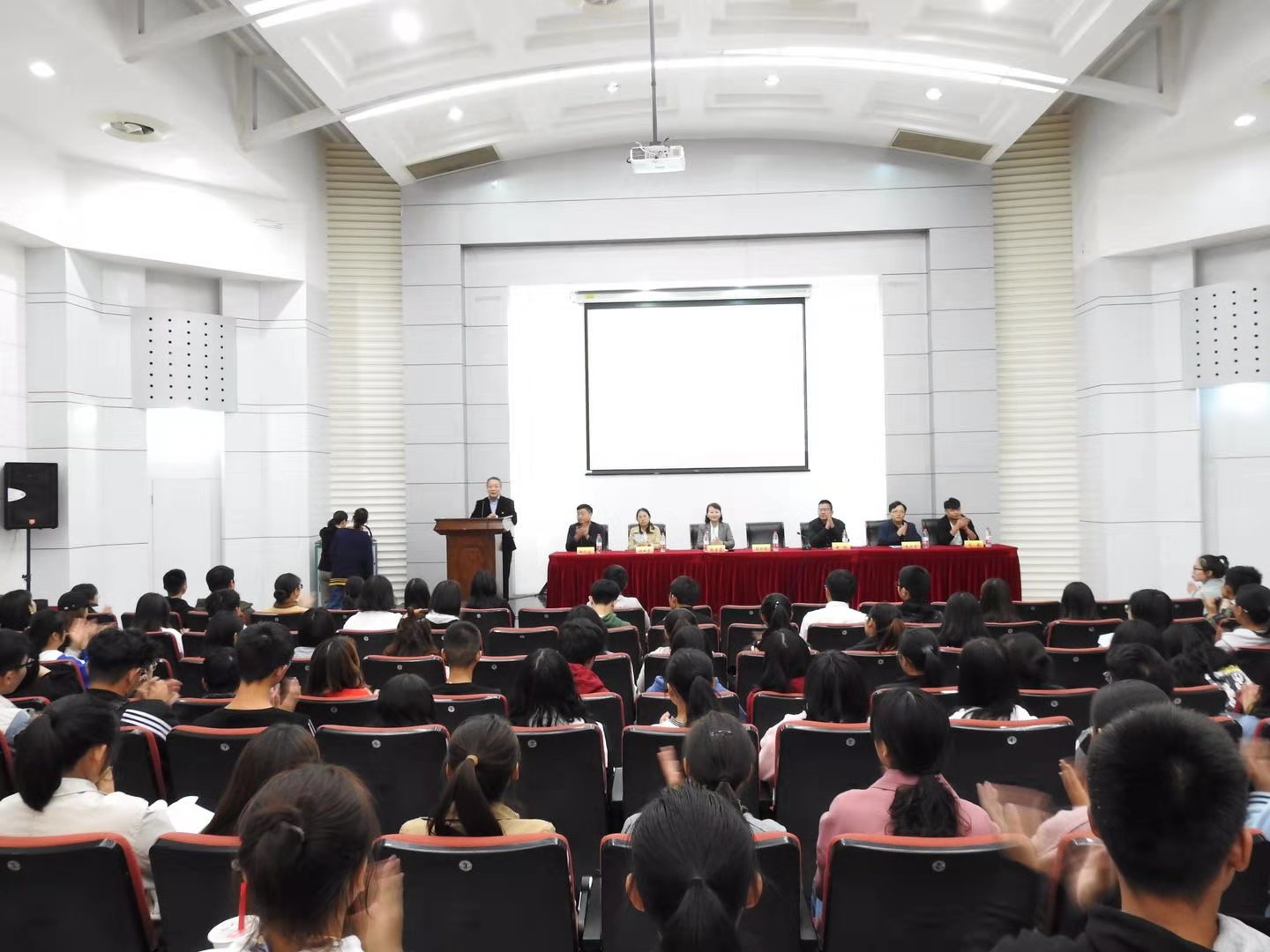 2019级新生教育第一讲在仙林校区德经楼报告厅举行,学院党委书记胡永远、院长黄斌、党委副书记张荣霞、副院长李永乐,有关教师、全体新生参加会议。会议由胡永远书记主持、黄斌院长主讲。