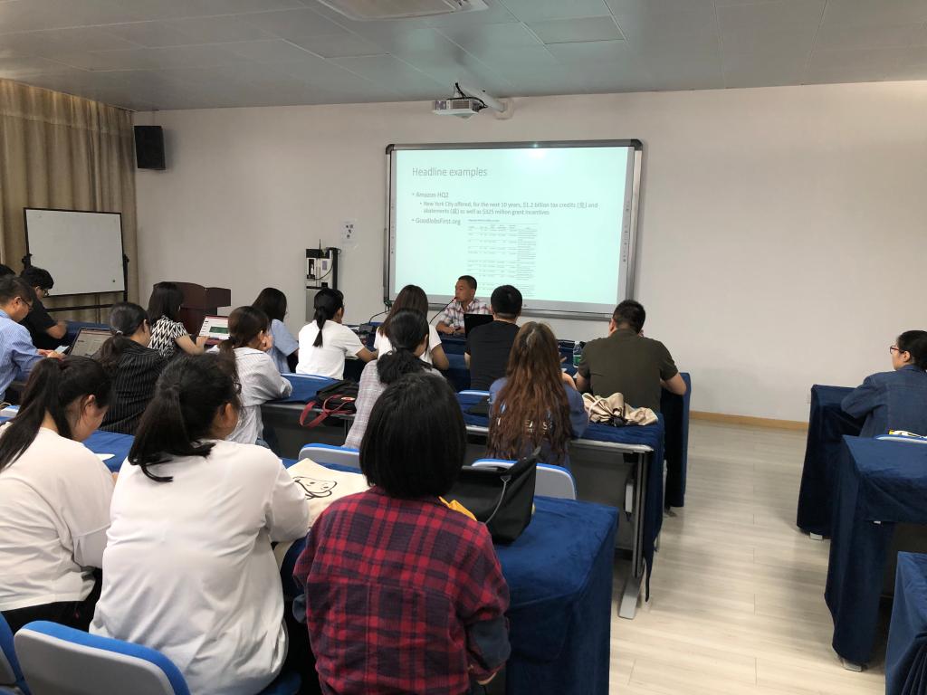 报告结束后,程韶明副教授、郭海副教授和孙瑞副教授还与在场师生进行了互动,并与MPA教育中心曹信邦教授、金志云副教授等人就MPA国际认证的建设工作进行了深入的交流。