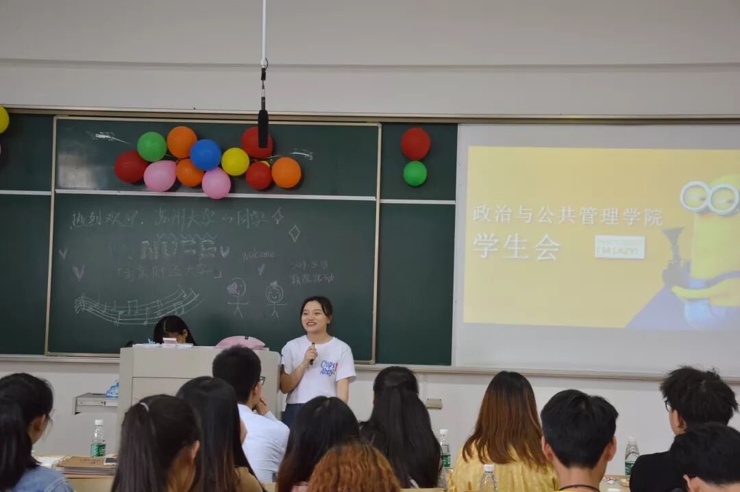 学生会主席韦丽晶介绍了公管主席团的成员以及各个部门的活动概况。她在介绍中用四组关键词囊括了ebook漫画