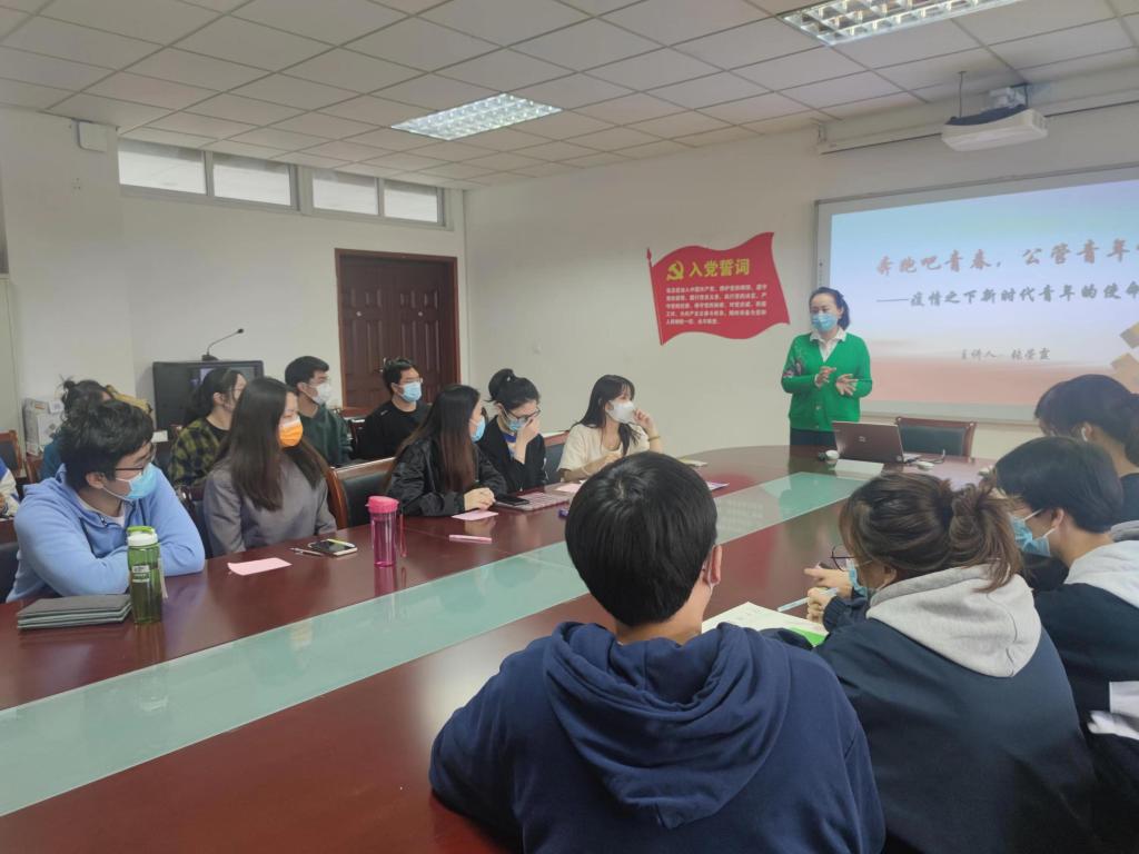 院长黄建伟、党委副书记张荣霞为本科生党支部青年学生上了一堂以“疫情之下新时代青年的使命与担当”为主题的师生党员双向探索式思政课。