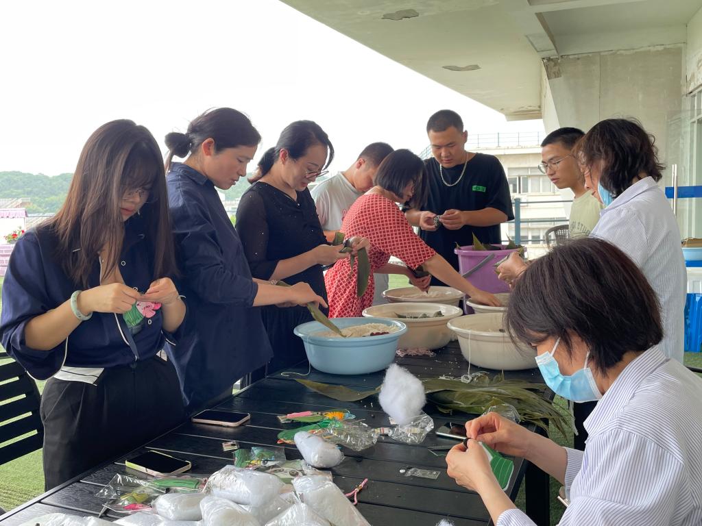 在德济楼五楼平台开展了“同心共育石榴籽,粽情端午零距离”主题活动,邀请学院党内外教职工、宿管阿姨及少数民族学生共度佳节。