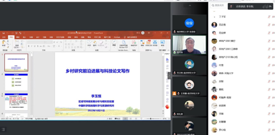讲座中,李玉恒副研究员首先从“乡村发展态势”和“乡村研究前沿”两大方面,结合自己在全球范围的考察和研究,梳理和论述了当前乡村振兴、可持续减贫以及粮食安全等重点领域的研究进展,并凝练出未来研究的方向和主题。随后,从期刊主编的视角,就英文论文的写作要求和方法给出了丰富的经验,同时分析了Journal of Rural Studies期刊的偏好及近年来的录用情况,并鼓励大家勇于向高水平期刊投稿。讲座结束后,李玉恒副研究员与师生进行了交流互动,对广大师生提出的问题一一作了详细解答。李玉恒副研究员的报告主题鲜明,国外案例丰富且实用性强,与会老师与学生纷纷表示受益匪浅。