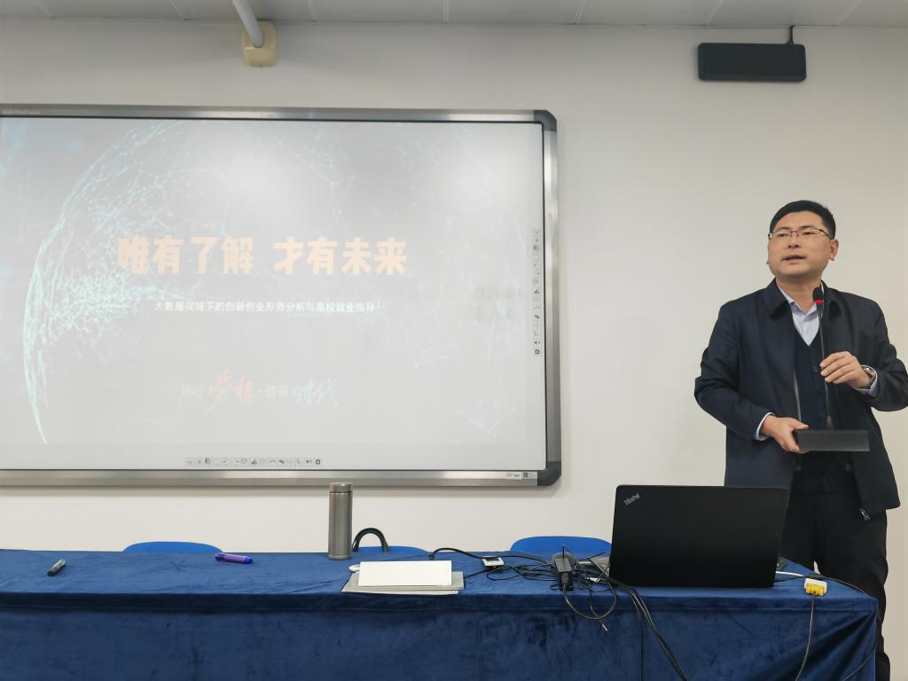 邀请了2002级校友——华普亿方集团江浙沪区域总监王建,为在校学子带来以“大数据视域下的创新创业形势分析与高校就业指导”为主题的创业与就业讲座。