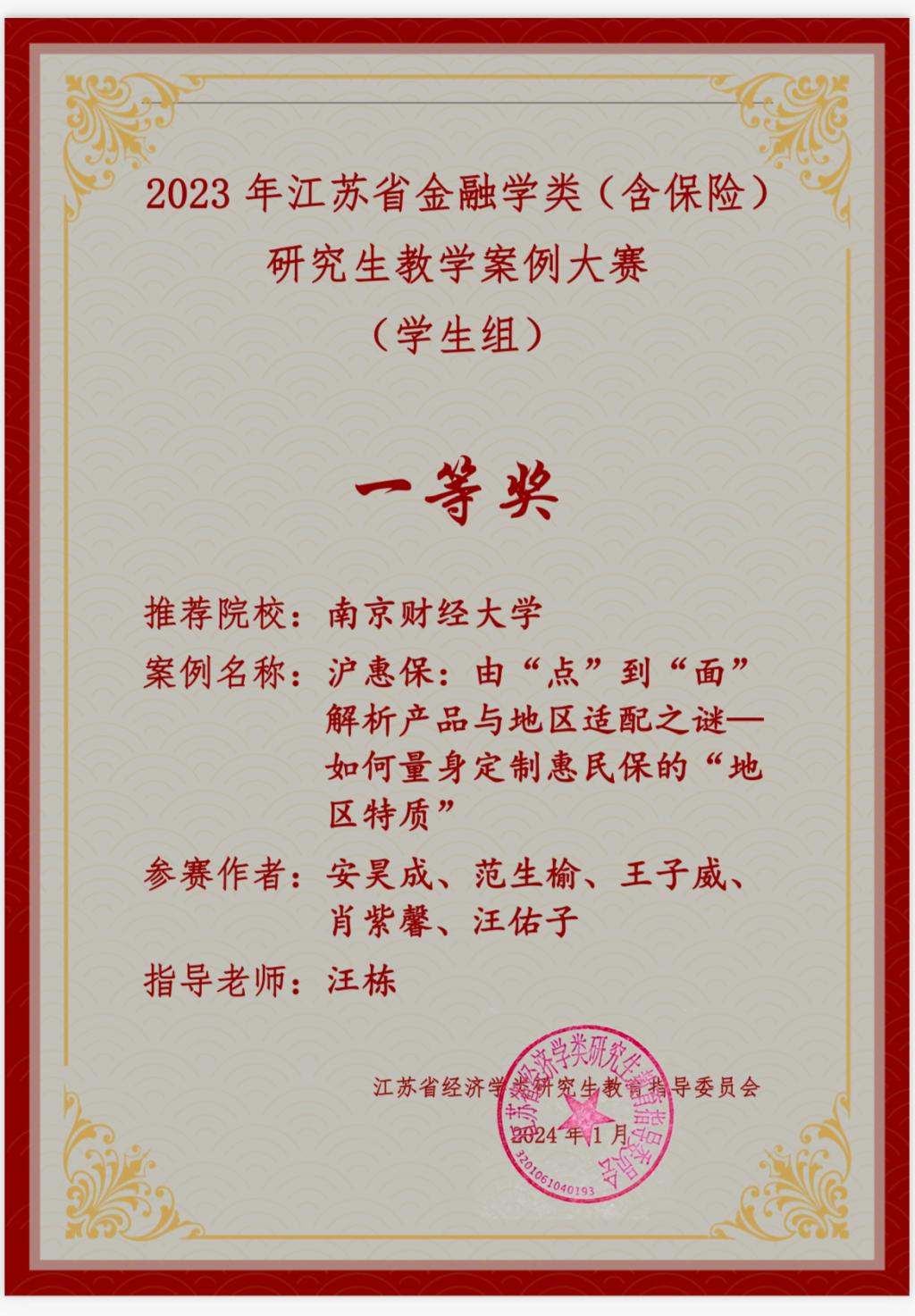 3月12日,由江苏省经济学类研究生教指委主办的江苏省金融学类(含保险)研究生案例大赛公布结果,ebook漫画 21级应用经济学研究生王子威、23级公共管理学研究生肖紫馨、安昊成的保险类分析作品《沪惠保:由“点”到“面”解析产品与地区适配之谜——如何量身定制惠民保的“地区特质”》荣获江苏省一等奖。