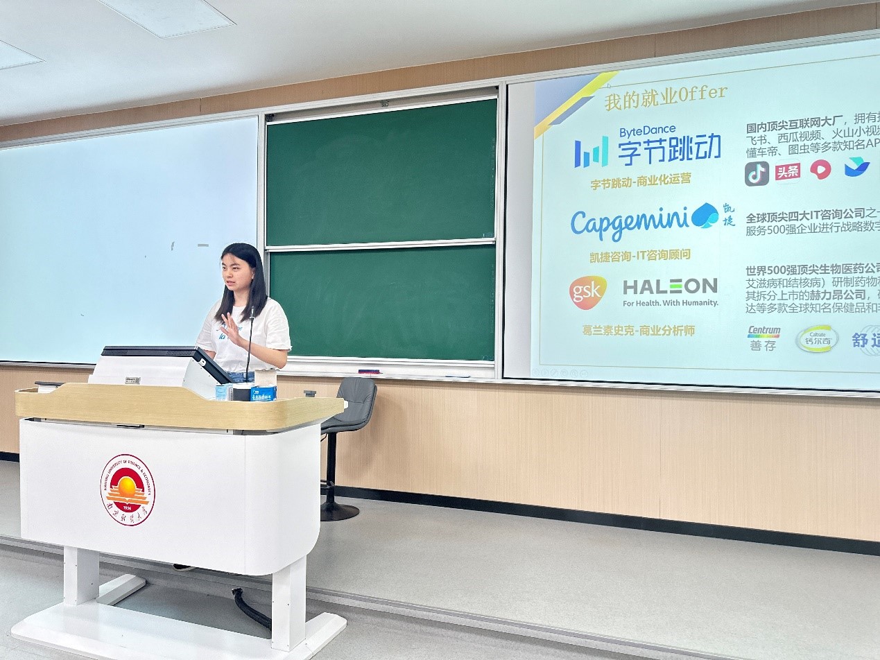 会议开始后,孙启副书记先邀请了我校两位荣获国家奖学金的周宏博学姐与马驭学长分别作了经验分享。马驭率先分享了考公信息的来源问题,提醒同学们应当从官方渠道获取考公的相关信息。同时马驭还特别讲解了选调生与公务员两个方向的具体差异,鼓励广大同学应当努力提升自己的硬基础、软实力,沉下心来,积极备考;接着周宏博分享了其丰富的求职经历,并对大一大二同学们最容易面对的未来发展问题给予了重要指导——“局部最优解/全局最优解”,在个体发展的过程中要避免盲目内卷,确定自己的目标,匹配自己的热爱。