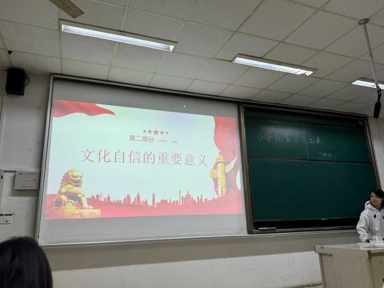 会议最后,杨芳同学从学习传统文化,弘扬民族精神,树立正确的价值观念,参与文化活动四个方面讲述了厚植文化自信的选择方法,最后做出总结,希望同学们能通过这次团课,对中华文脉的内涵和历史传承的重要性有进一步的了解。