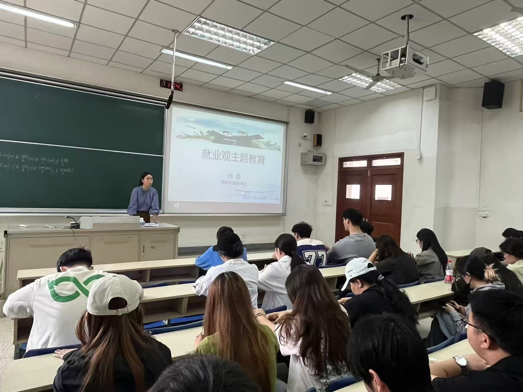 面向2022级全体学生召开就业观教育主题班会。学院党委副书记孙启、辅导员李小燕及2022级全体同学参加活动。
