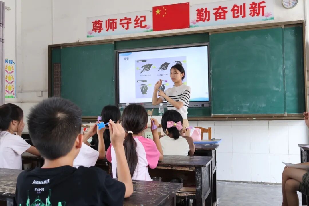 经过前期精心筹备,支教团队相继开展“请与我击掌吧”、“烦恼树洞”等特色活动。前者以手绘掌心、互动击掌搭建情感桥梁,让孩子在趣味创作中感受击掌的温暖;“我经常见不到爸爸妈妈”“我害怕考不好”……烦恼树洞承载下小小心事,老师进行针对性沟通,用耐心化解成长困惑。系列活动将心理教育融入日常,以知识与温情守护孩子们的心灵健康。孩子们在感受被理解、被关注的同时,也学会了更坦然地面对内心的情感。