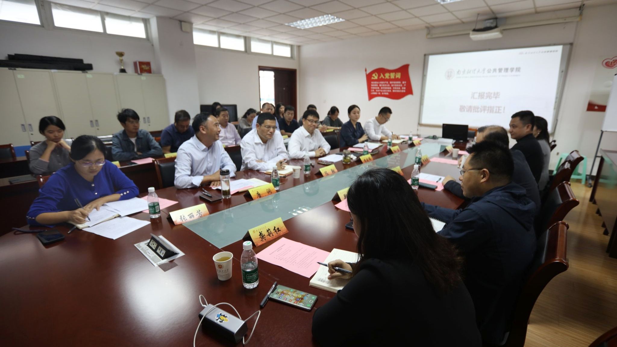 党委书记陈翔、院长黄建伟分别汇报了学院党建思政、高质量发展、MPA教育发展等工作开展情况,以及学院“十五五”规划思路。学院其他领导班子成员及教师代表围绕人才培养、学科专业建设、有组织科研、教育教学改革、师资队伍建设等方面展开深入交流。