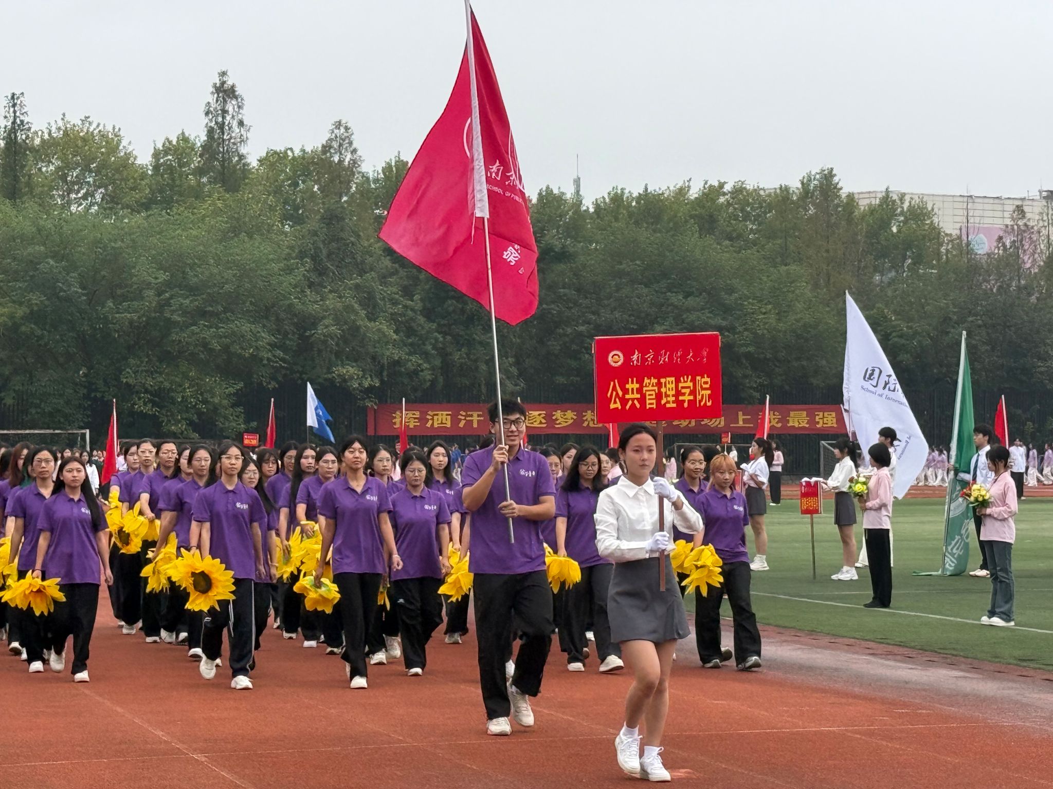 方阵队伍也格外出彩,队员们面带微笑,声音洪亮,步调整齐,以饱满的热情挥舞着手中靓丽的黄色向日葵。蓝天下院旗飞扬,那句“公济天下,管育青年,心向所之,行必将至”的口号展现出公管学子们独特的精神风貌。