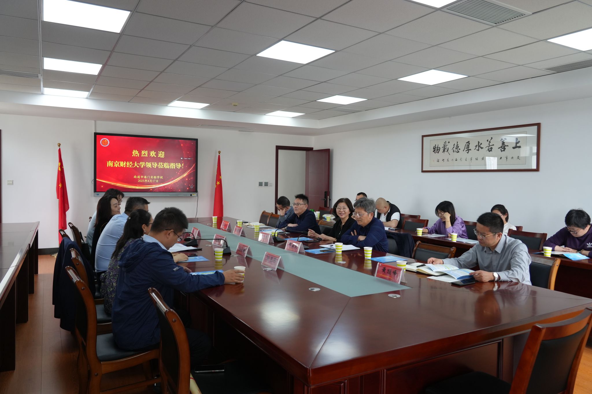 和海门中学领导合影