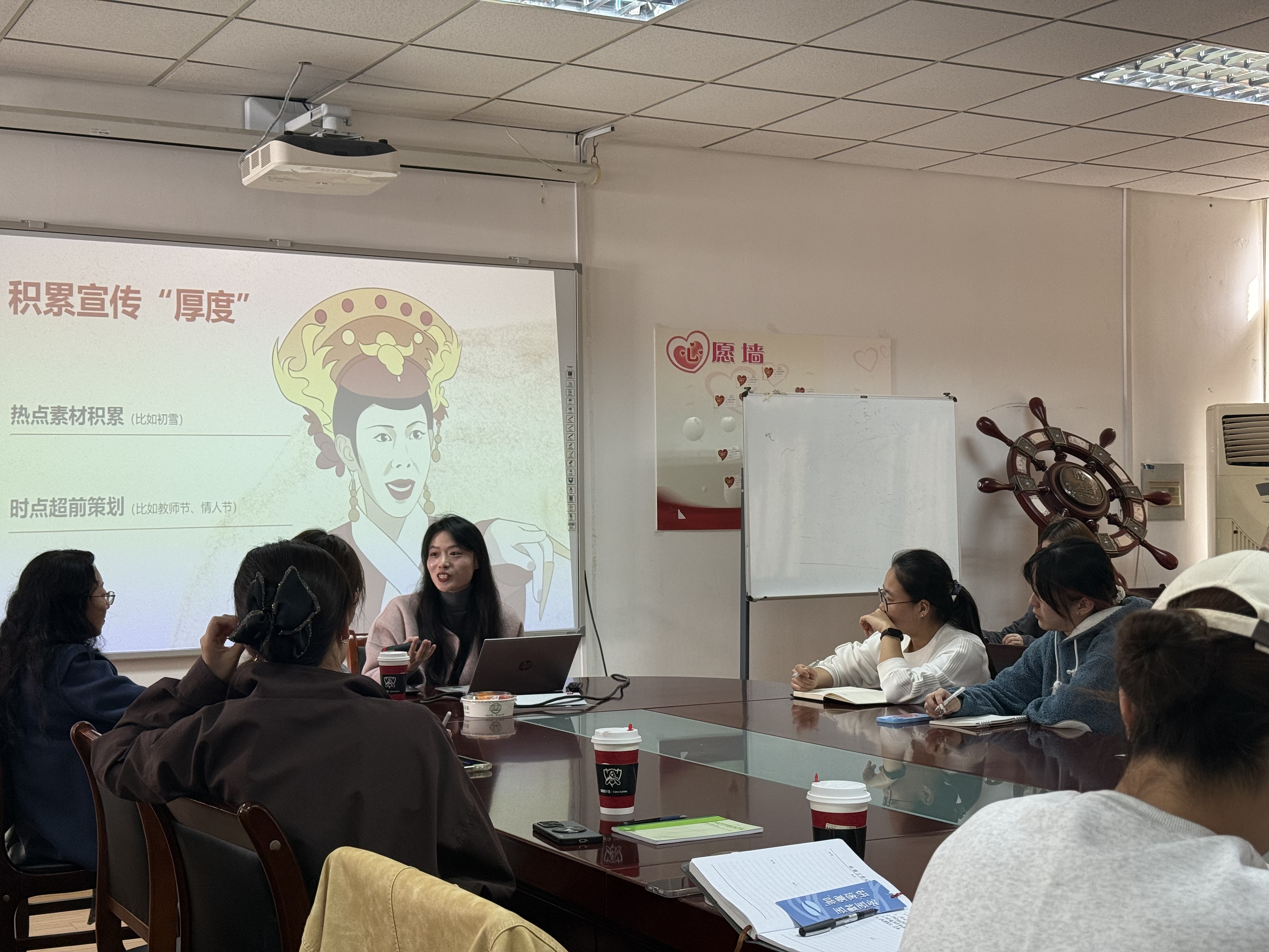专业负责校公众号的李敏老师进行相关技能的分享,两学院的辅导员及团委、学生会的部分成员参加了此次学习。