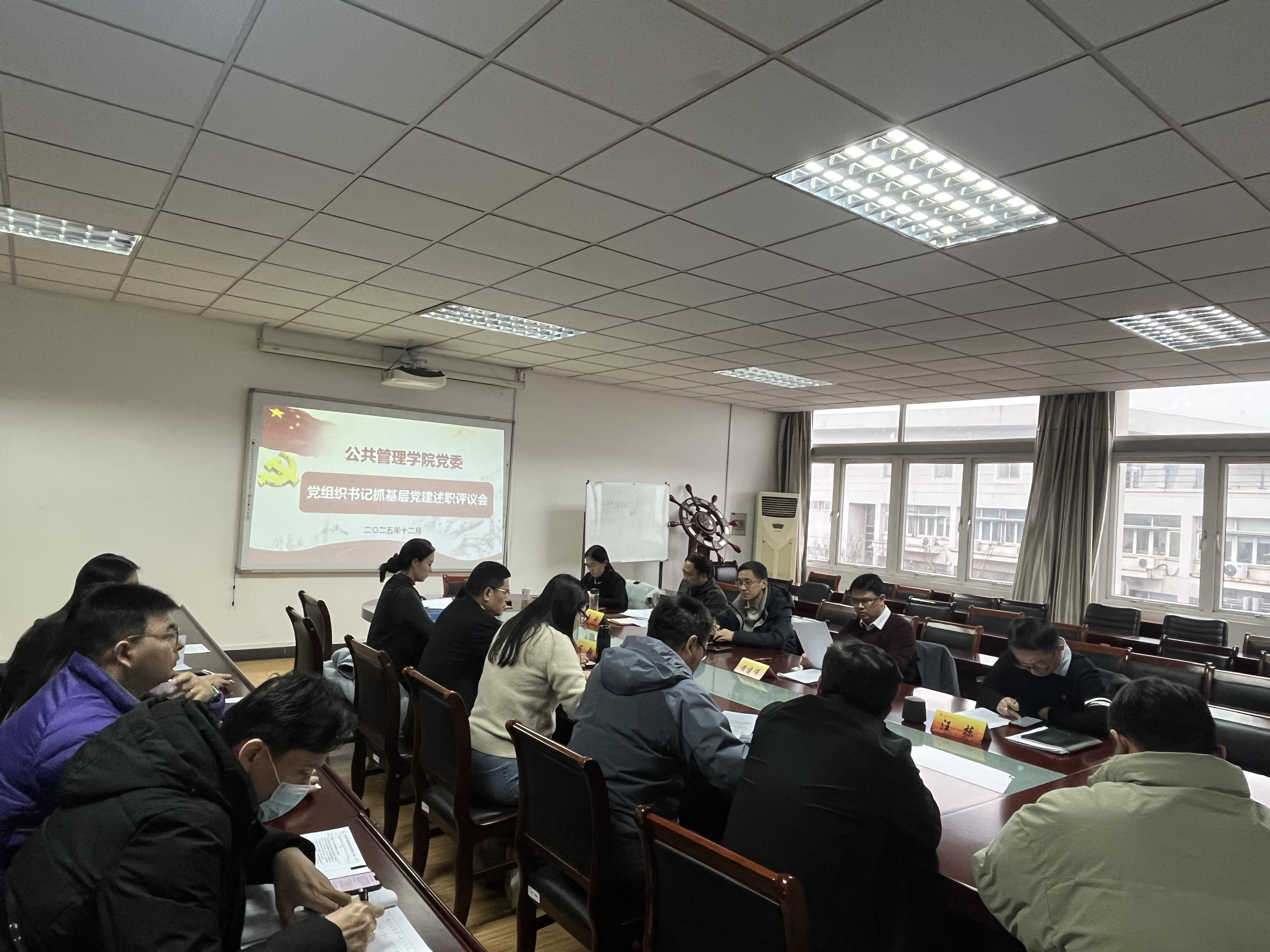 在德济楼508会议室召开2025年度党支部书记抓基层党建述职评议会。党委保卫部部长刘伟华到会指导,学院全体党委委员、各党支部书记出席会议,支委会成员列席会议。会议由学院党委书记陈翔主持。
