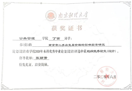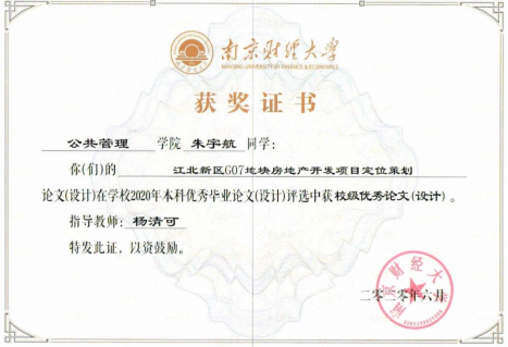2016级房地产开发与管理专业朱宇航同学的毕业设计“江北新区G07地块房地产开发项目定位策划”在ebook漫画 2020年度本科优秀毕业论文评选中获校级优秀毕业设计,这也是房地产开发与管理专业首篇优秀毕业设计,充分体现了“双元”考核机制的成效;丁寅同学的论文“南京市二手房交易价格的影响因素研究”获得了校级优秀毕业论文。