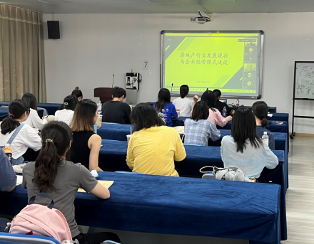 李总从行业发展现状及原因、开发企业基本经营模式和行业发展趋势等方面,介绍了房地产行业发展现状与企业经营模式,最后提出了个人发展建议。李总认为,当前大学生应立足专业,掌握一技之长;兴趣广泛,有爱好特别突出;多读书,以经典著作为主;信息碎片化时代,获取信息更要甄别。讲座后,师生就未来工作岗位选择、各岗位薪资情况和实践实训中应注意的问题等方面进行了深入交流,提升了学生的实践实训能力。