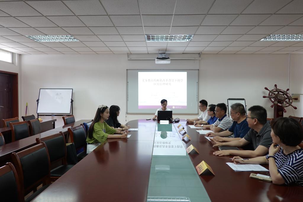 论文团队成员邓攀、高翔、杨佳楠同学分别从选题依据、团队合作、研究方案、结论、创新点等方面进行了内容陈述。论文团队在系统全面的文献综述基础上,基于公办教育质量对住宅价格的影响机制进行实证研究,运用截面数据模型揭示了南京市小学教育质量对学区房溢价影响,运用动态数据对南京市公办教育质量的溢价效应及政策进行效果评价,深入梳理了义务教育均衡化改革背景下国家出台的一系列政策工具,并基于政策国际比较的视角提出了多个维度的政策建议。