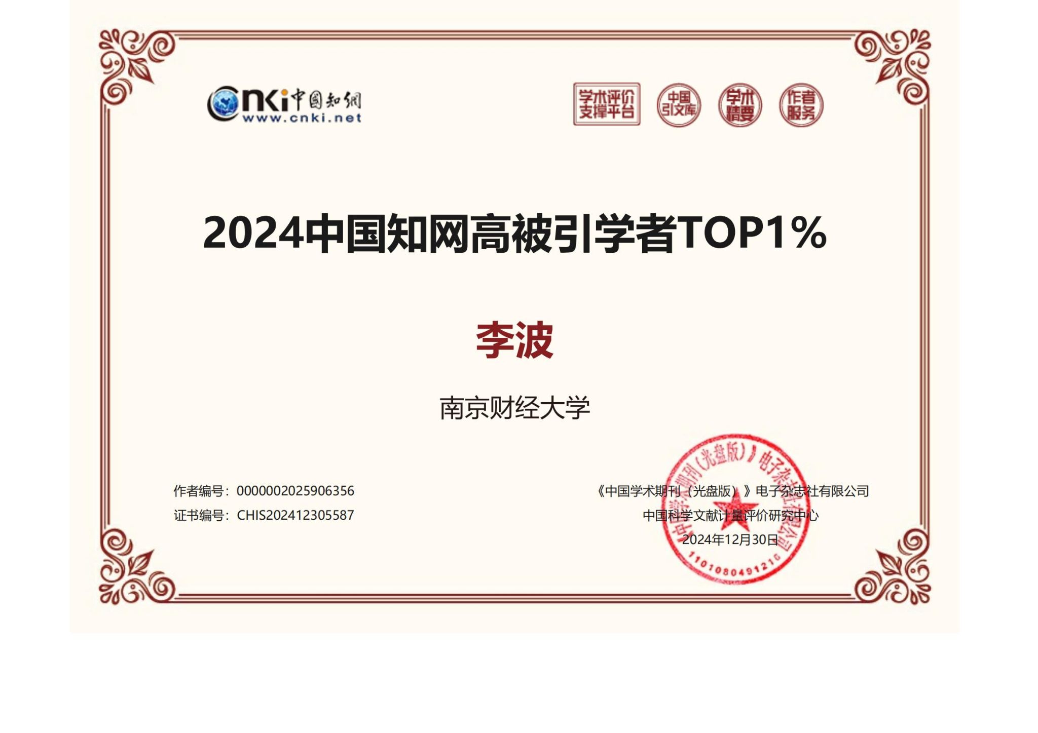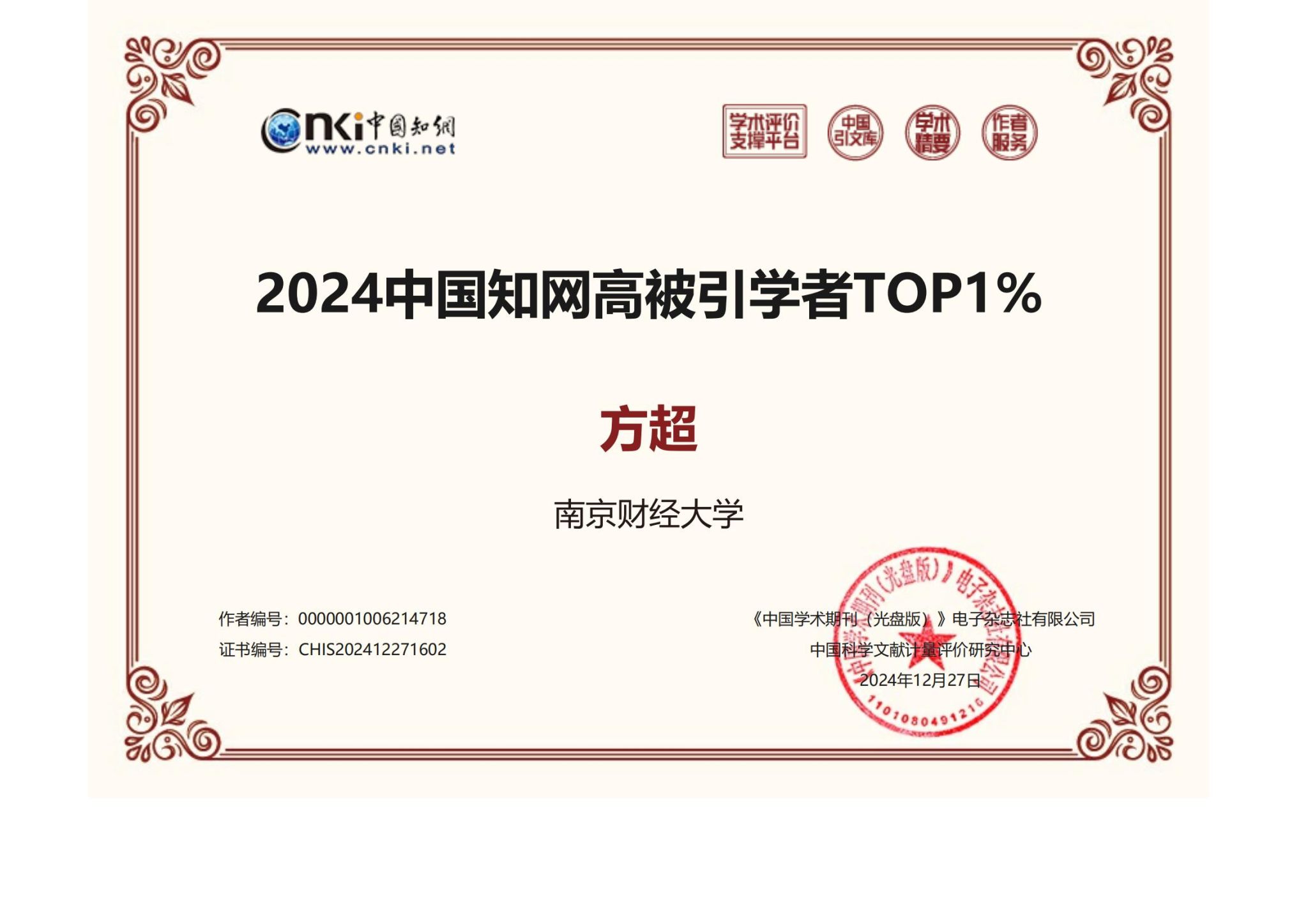 入选“2024中国知网高被引学者”名单是对学者个人学术成就和学术影响力的肯定。在本次发布的TOP 1%名单中,公共管理学科共有864位学者入选,政治学学科共有663位学者入选,农林经济与管理学科共有670位学者入选,环境科学与工程学科共有418位学者入选,应用经济学学科共有3382位学者入选。