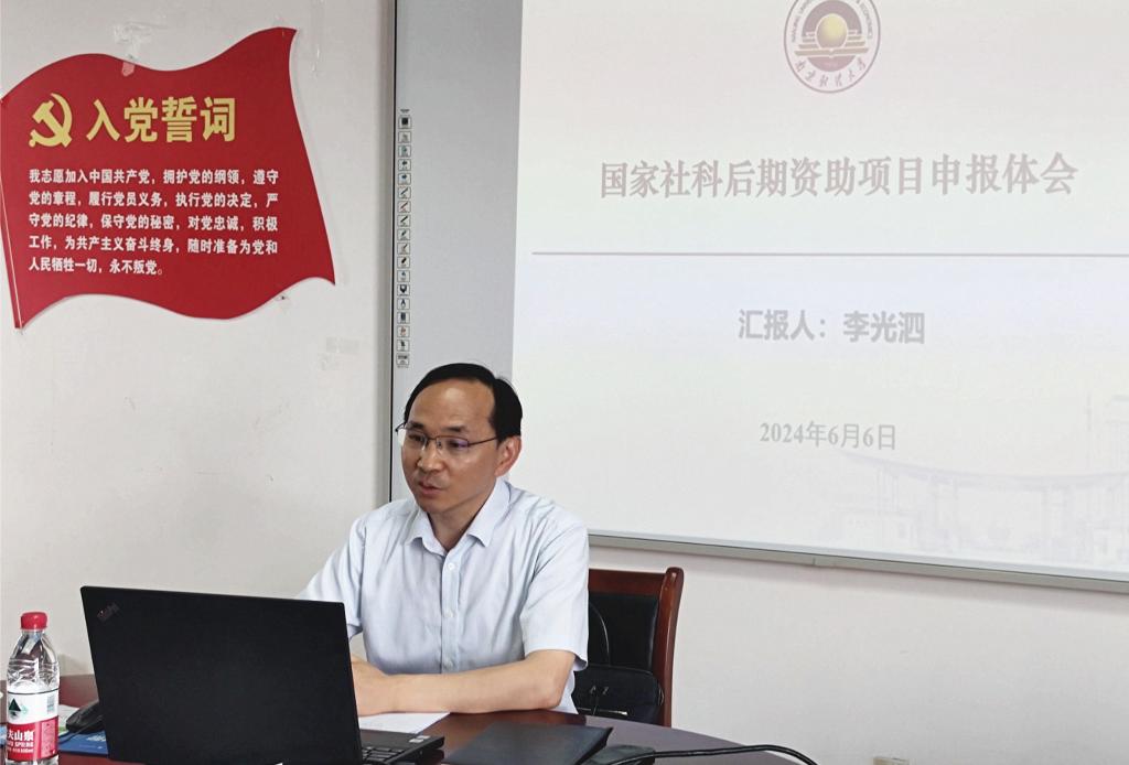 随后,李光泗教授分别从申报者和评审者的视角分享了后期资助申报经验和心得体会。从申报者视角,他强调选题是项目的核心,指出在日常科研中应强化理论创新与实践价值,广泛参考往年中标的课题,从而凝练出“顶天立地”的好选题,选题对于是否能成功立项至关重要,同时还要注重个人相关研究成果的梳理,认真准备申请书、研究报告,并提前联系出版社出具意见;从评审者视角,可从创新程度、完备程度、难易程度以及成果价值多个指标维度对国社科后期资助项目成果的评价体系进行了介绍、分析;并与参会老师就社科后期项目在申报准备过程中涉及到的相关问题进行了讨论解答。