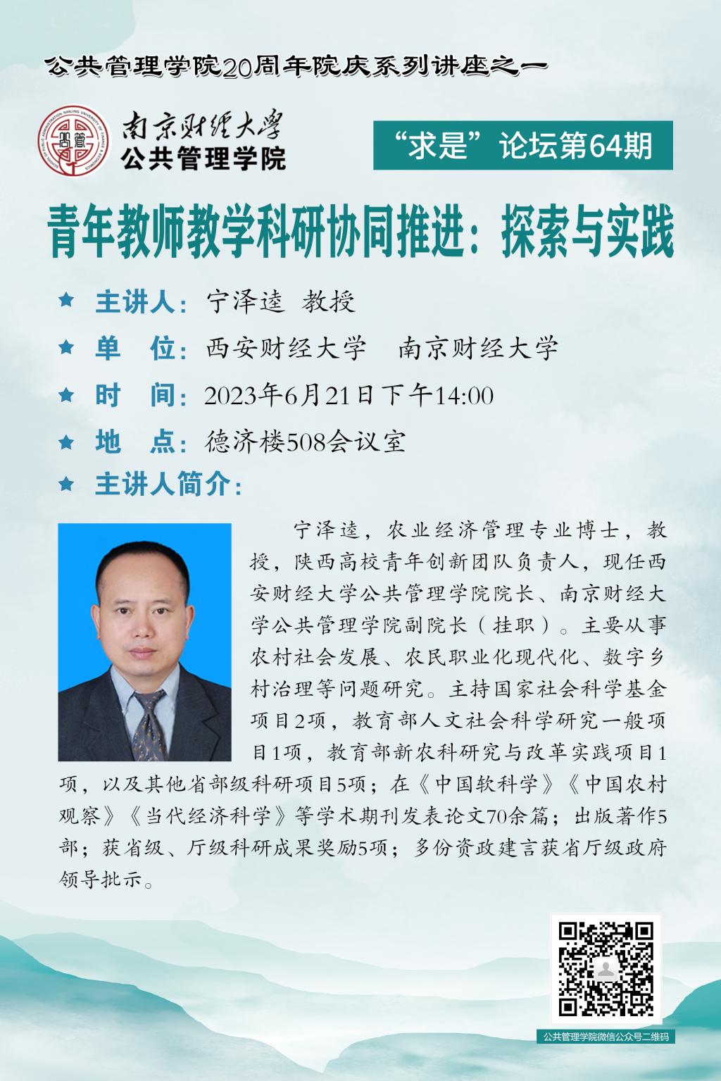 【讲座预告】“求是”论坛第64期