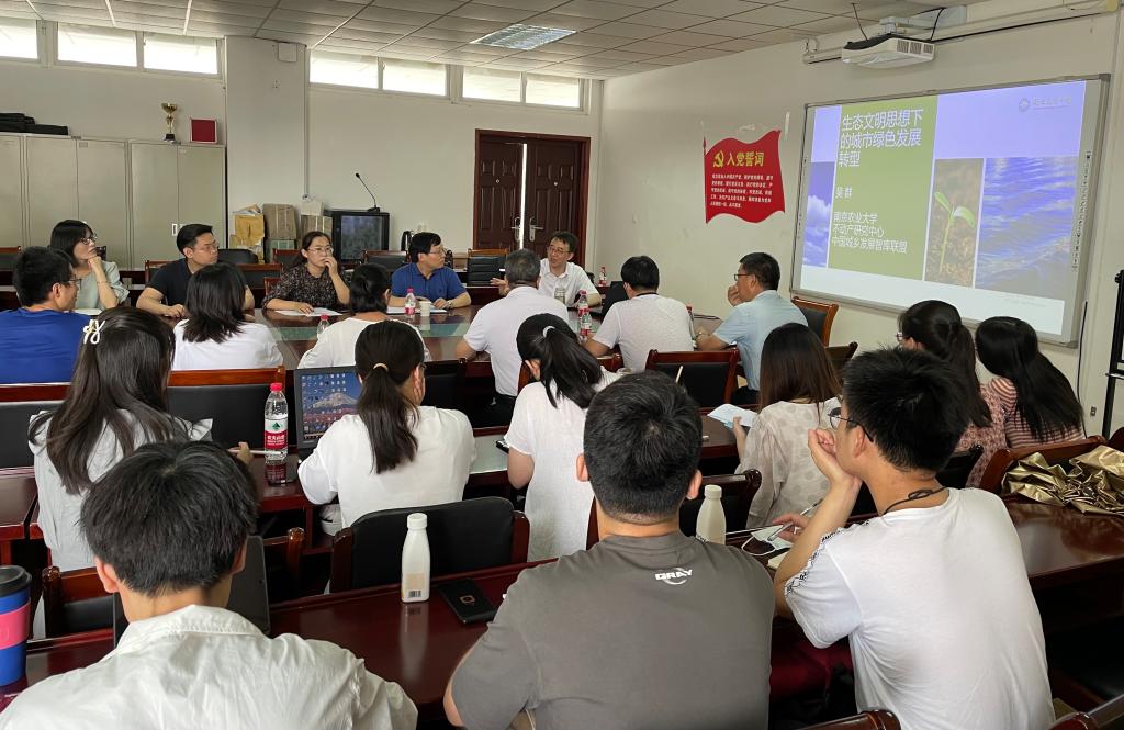 7月6日上午,应ebook漫画 邀请,南京农业大学钟山学者首席教授、不动产研究中心主任吴群教授在仙林校区德济楼508会议室作了题为“生态文明思想下城市绿色发展转型”的学术报告。ebook漫画 部分师生聆听了报告会。报告会由ebook漫画 党委书记胡永远主持。