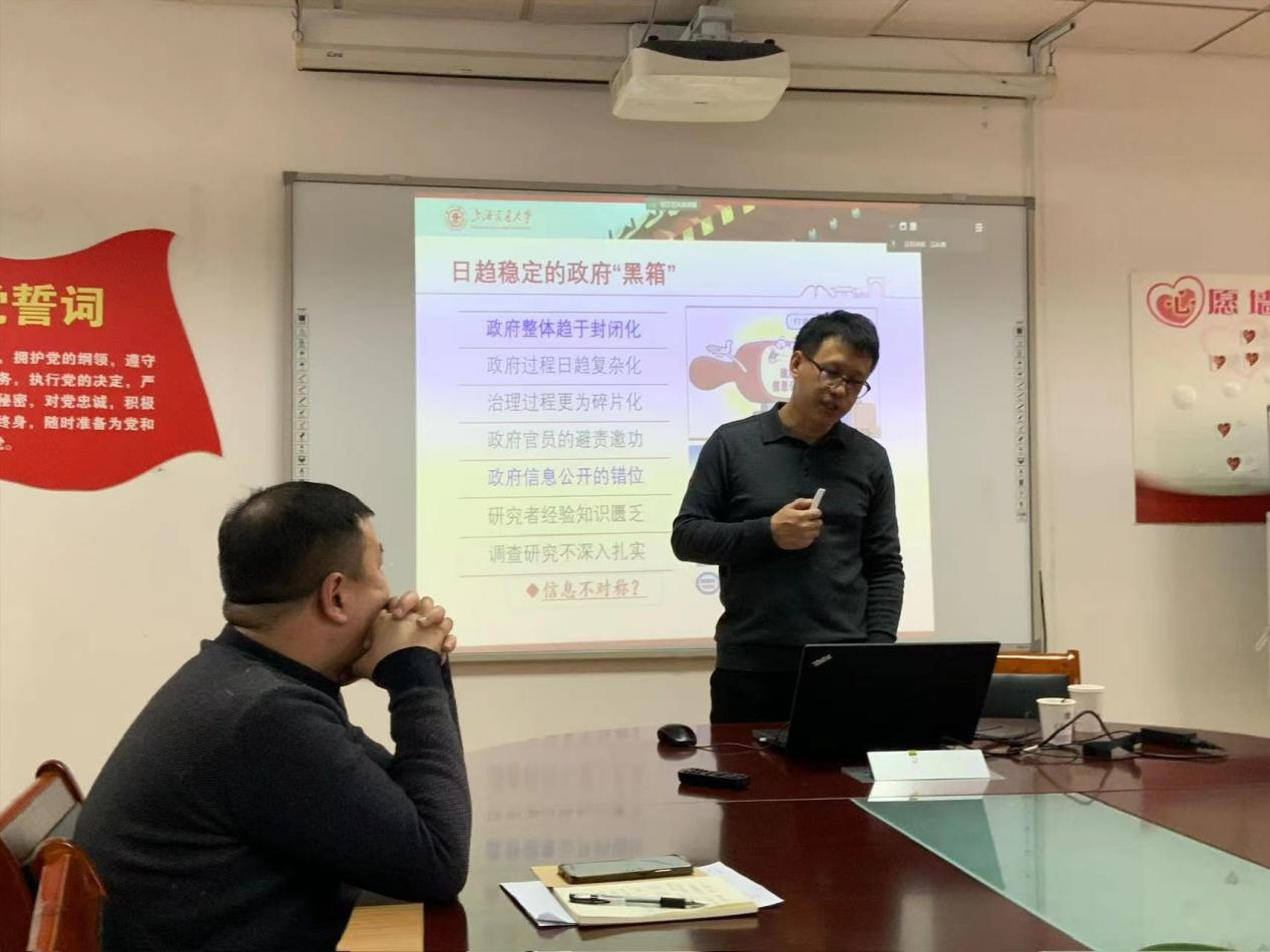 在讲座中,韩志明教授首先以“上海浦东机场禁停网约车”案例为切入点,引出目前我国政策过程中“遍地黑箱”的问题,并指出由政策的“黑箱”导致了公众“雾里看花”的社会现象。随后,韩教授详细阐释了政策“黑箱”的多重维度,创造性地展开了互联网时代政策透明的想象。最后,韩教授指出理论研究者应戒骄戒躁,注重实践,深入调研,进而打破政策的“黑箱”。