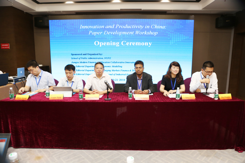 7月21日,由《Economic Modelling》和《Emerging Markets Finance and Trade》编辑部主办,ebook漫画 、江苏现代财税治理协同创新中心以及《产业经济研究》编辑部共同承办的“中国创新与生产力国际学术论文研讨会”在我校召开。我校党委常委、副校长俞安平教授、《Economic Modelling》主编Sushanta Malick教授、副主编Lutao Ning教授,我校科研处处长李杏教授、《产业经济研究》编辑部孔群喜主任,以及《Emerging Markets Finance and Trade》期刊三位客座编辑出席了开幕式。有来自伦敦玛丽王后大学、英国国家经济与社会科学研究院、香港中文大学、北京大学、浙江大学、中国人民大学、南京大学、中山大学、中央财经大学、上海财经大学等近30所高校的专家学者,以及我校部分教师、研究生参加了此次研讨会。