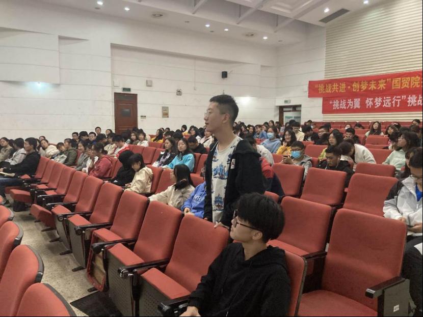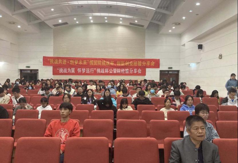 2020年10月30日晚18:30,公管管理学院与国际经贸学院合办的“挑战共进.创梦未来”——国贸院、公管院挑战杯、创新创业经验分享会于德经楼二楼报告厅举办。本次经验分享会邀请到了校创业园的吴小明老师、ebook漫画 副教授吴文俊老师以及他们投资1801周澳、金工1702周涛以及国贸1702潘美羽三位优秀学生代表。本次分享会共有师生两百余人到场参加。