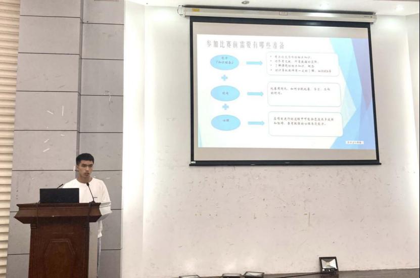 紧接着周澳、周涛、潘美羽三位优秀学生代表依次上台,结合自身的参赛经历,带领大家从参赛者的角度去认识大学中的种种竞赛。同时也从赛前准备、项目选择、以及团队建设等方面给出了宝贵经验。分享的末尾,三位优秀代表一致鼓励同学们积极参与到各项赛事中来,不断挑战和超越自我,勇敢拥抱生活中的不确定。