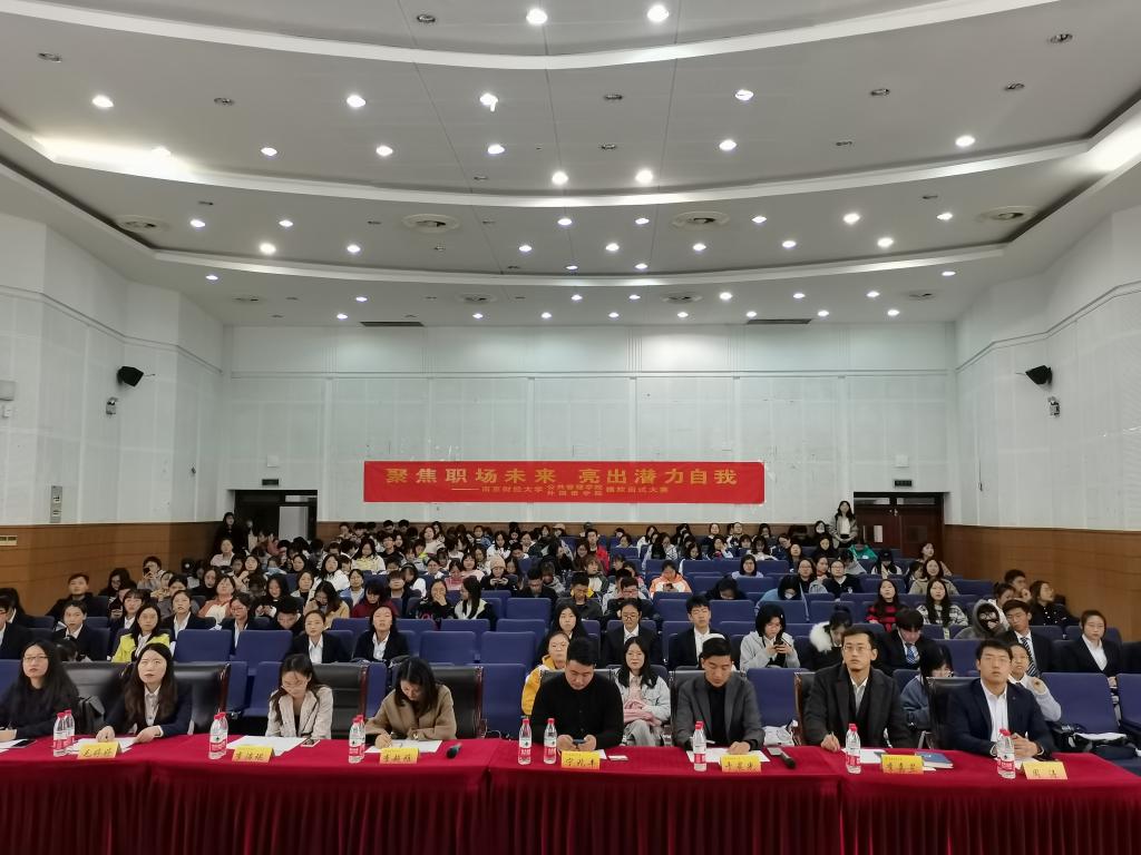 前期近两百名同学参与了此次模拟面试大赛的赛前培训,经过初选有20位同学脱颖而出进入决赛环节。大赛决赛设置选手的自我介绍、情景面试、无领导小组讨论,评委点评以及现场观众投票三个环节。现场邀请了南京链家房地产经纪有限公司、上海泽稷教育培训有限公司、南京众享教育科技有限公司、南京德渊教育科技有限公司负责人以及ebook漫画