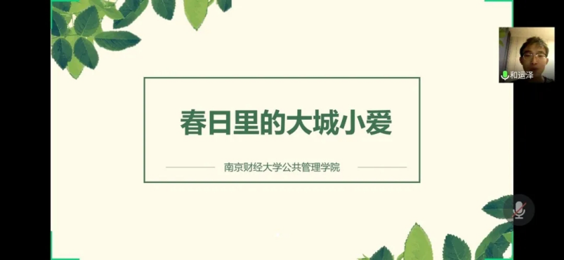 筹办了主题为“春日里的大城小爱”线上摄影比赛活动,以展现南财学子眼中2020年不一样的春天。本次活动引导同学们通过镜头发现美、记录美、传播美,展现同学们乐观向上,朝气蓬勃的精神风貌,促进校园文化艺术的繁荣发展,同时弘扬时代主旋律,传播社会正能量,加深同学们的家国情怀。