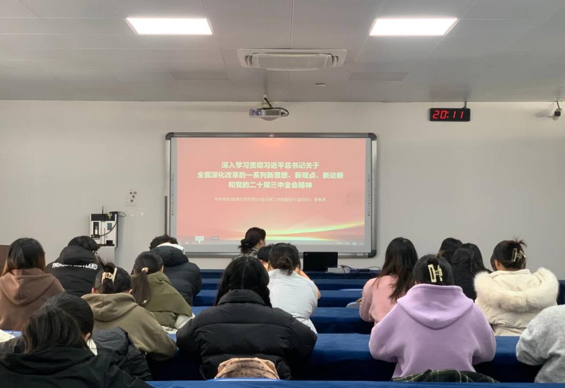 会议伊始,学院党委副书记孙启介绍了《中共中央关于进一步全面深化改革、推进中国式现代化的决定》的主要内容,涵盖进一步全面深化改革总目标;贯彻的“六个坚持”原则;全面深化改革做出的系统部署等以及党的二十届三中全会对于指引中国未来发展的重大意义。她鼓励全体学生党员要认真学习、深刻理解会议精神,将其内化于心、外化于行,通过自己的实际行动来践行新时代青年的历史使命与责任担当。