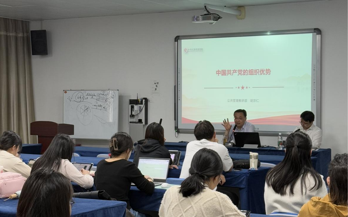 讲座伊始,胡宗仁主任以党史回顾为切入点,论述历史为什么要选择中国共产党,激起了在场支委会成员们的浓厚兴趣。讲座过程中,胡宗仁主任深入剖析了中国共产党组织优势的构成,通过列举大量详实的事件与数据,全面探究中国共产党这一卓越组织中的领袖优势、使命优势、体系优势、队伍优势与纪律优势。最后,就中国共产党组织优势的拓展进行系统分析,从领导者领导力、组织使命感召力、组织体系组织力、干部队伍战斗力以及组织纪律约束力等角度提出展望。