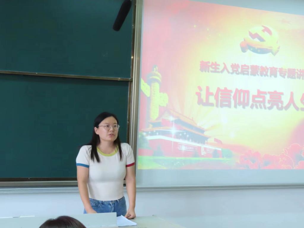 首先,高晓东书记发表讲话。高书记围绕“如何认识中国共产党”的问题,向我们讲述了中国共产党的发展历史、现状以及在发展过程中取得的一系列成绩和宝贵经验,重点阐述了中国共产党的三个特质。第一,中国共产党历经艰难困苦,是一个从艰苦斗争中成长起来的党,斗争经验丰富;第二,中国共产党善于针对当时所处的实际环境进行理论创新,不断开创新局面;第三,中国共产党勇于自我革命,具有自我净化、自我完善、自我革新、自我提高的能力。最后,高书记鼓励大家积极向党组织靠拢,树立崇高的理想信念,为党注入新鲜血液。