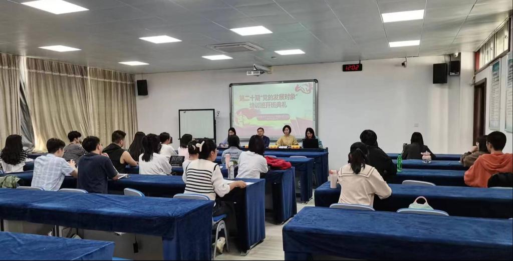 党委分党校在德济楼502实验室举行第二十期党的发展对象培训班开班仪式。学院党委书记、分党校校长高晓东,党委副书记、分党校副校长孙启,兼职组织员、本科生党支部书记高敏,研究生党支部书记江金纹以及培训班共计32名本科生和研究生学员参加了仪式,仪式由高敏老师主持。