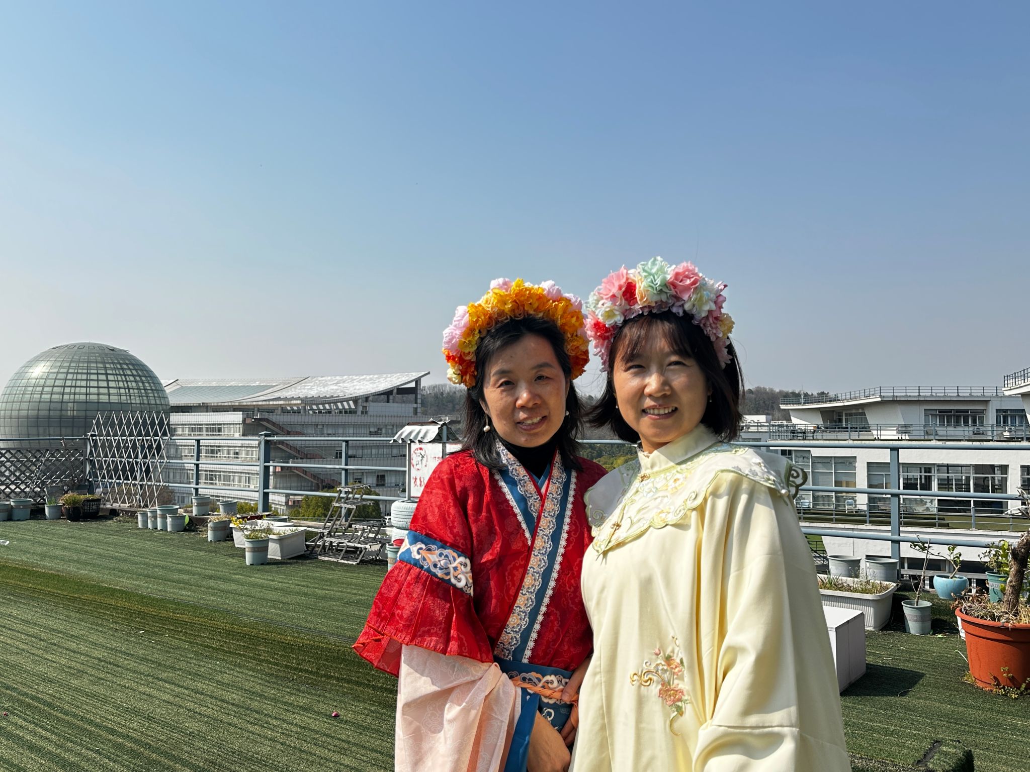 伴随着音乐的缓缓流淌,老师们沉浸在手工制作的乐趣中。一朵朵艳丽的鲜花,在老师们的巧手下,变成了独一无二的艺术品。手工簪花完成后,老师们穿上汉服,分享制作过程中的乐趣与感悟。最后,大家合影留念,为这次难忘的活动画上了圆满的句号。
